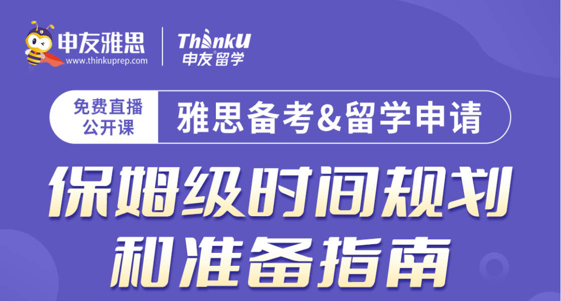 参加讲座的同学可以联系成都申友留学小助手【微信号:thinku114】活动详情↓↓↓↓↓↓2021已经过去新的一年已经来临想考雅思但不知道该从何下手?也没有明确的备考时间规划对今年的新题也不了解想申请23留学却还没开始制定规划?别人正在如火如荼的备考提升而你软硬背景提升重点一脸懵更别提选校选专业每天都在焦虑和纠结中度过不仅要备考雅思,还要兼顾留学事宜还要了解相关资讯,害怕错过重要信息..压力山大此时的你一定希望有个“高人”来指点迷津带领你走上“人生巅峰”!不要怕!申友懂你!现在就有个机会摆在你面前申友雅思联合申友留学推出免费公开课【雅思备考&留学申请:保姆级时间规划和准备指南】更有惊喜福利等你来解锁两个1小时能收获什么?关于雅思你将掌握↓2022年雅思考试最新变化从0-1雅思备考时间线雅思全科考点+难点还有短时应急备考方案关于留学你将收获↓最新英国商科专业解析23fall专属时间规划英商软硬背景申请要求详解更有22fall最新录取案例分享适合那一类人群?本次名师在线直播活动适合以下同学↓雅思备考人群!不管你是今年还是明年计划参加考试,不管你是听力、口语、阅读、写作任意短板,只要你有雅思需求,你都可以从这里带走一份收获!23fall申请英国商科留学er!不管你是大三刚开始决定留学的宝,还是准备得不是很充分急需恶补那一波,亦或是你早有准备只需冲刺提升,你都需要这个机会,为你接下来申请前有限的时间去争取更多的可能!怎样报名预约?01雅思备考时间规划和准备指南直播时间:1月19日19:00 - 19:450223fall英国商科留学规划&准备指南直播时间:1月20日19:00 - 20:00扫描下方二维码即可免费报名参加祝小伙伴们申请必过,offer拿到手软,我们下次见~—END—